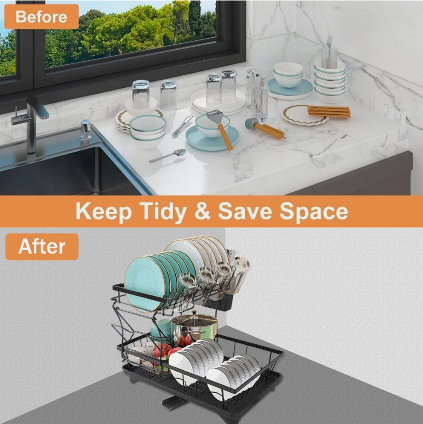 Large 2-Tier Dish Drying Rack with Utensil Holders