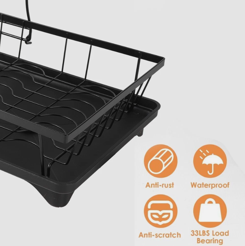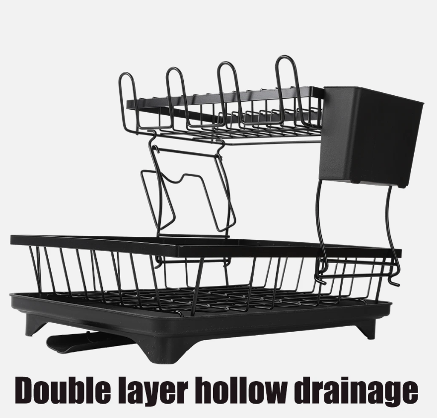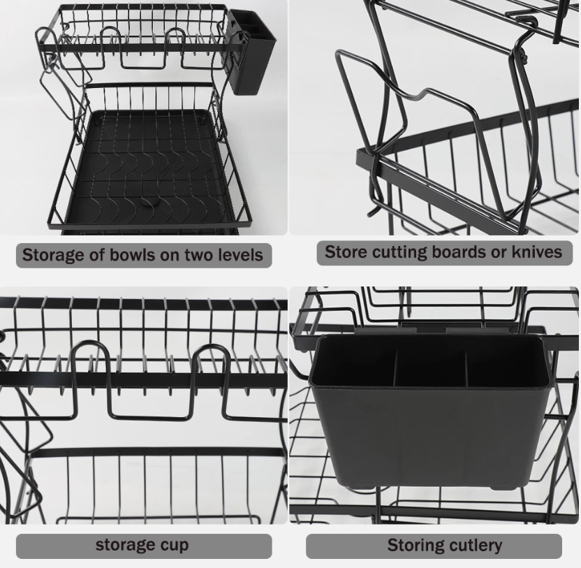 The removable double-tier design offers flexibility — use the upper rack separately as a sink drainer when needed, while the large bottom tray easily accommodates bigger kitchen items.