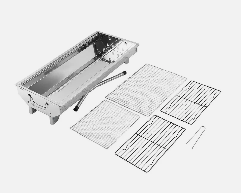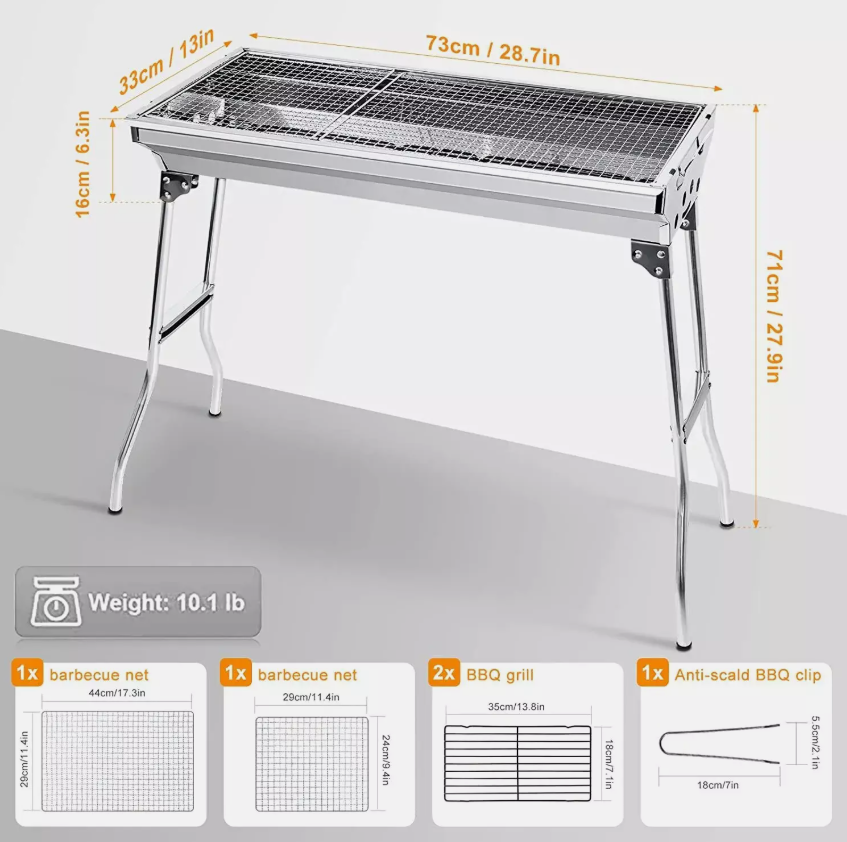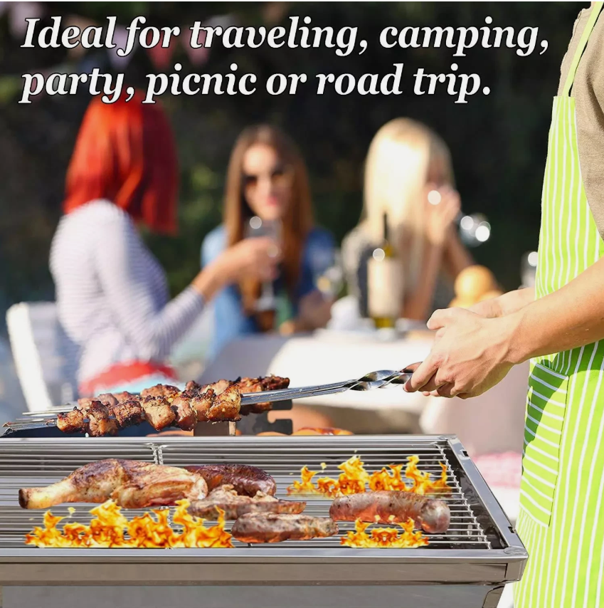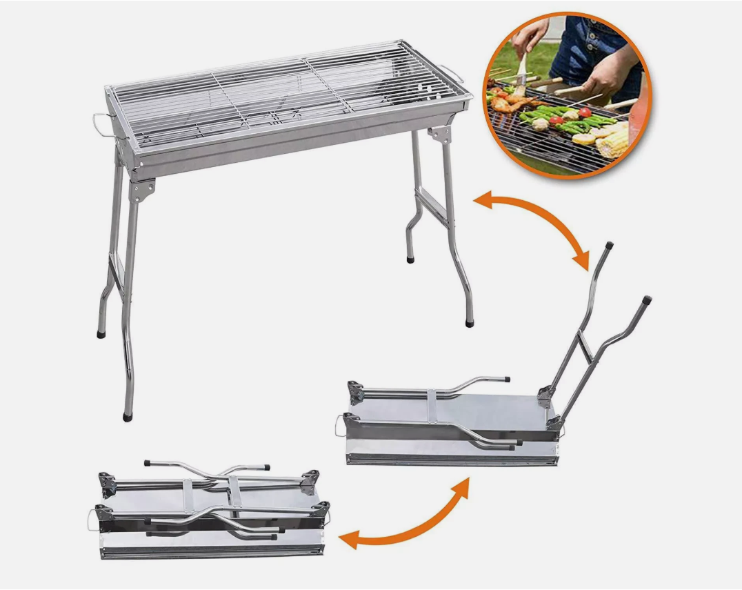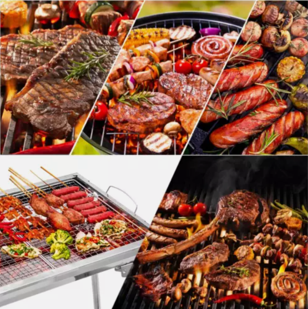 This Folding BBQ Charcoal Barbecue Grill is the perfect companion for camping trips and picnics. Made from durable stainless steel, it is easy to clean and corrosion-resistant. The grill set includes everything you need for a delicious barbecue, including a charcoal fuel type for a smoky flavour. With dimensions of 70cm in height and 33cm in width, this compact stove is lightweight at 2.85kg, making it convenient to transport. The sleek silver colour adds a stylish touch to your outdoor cooking experience.