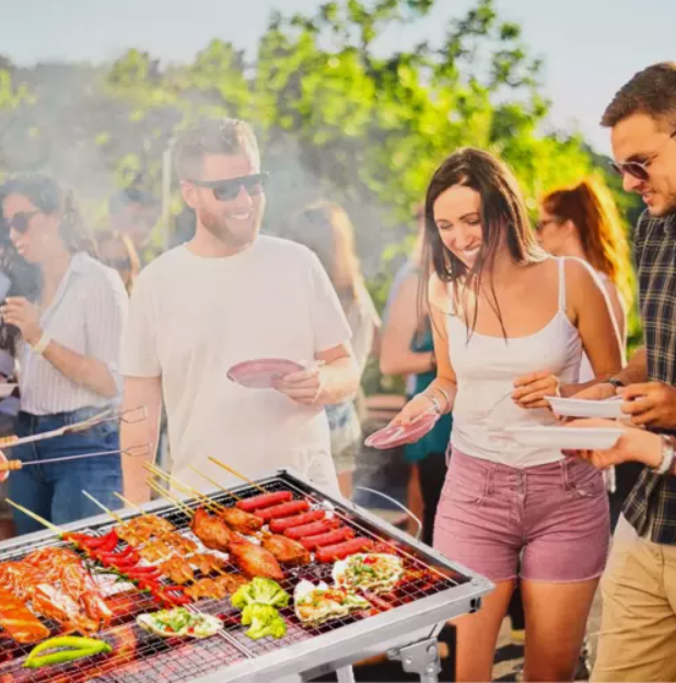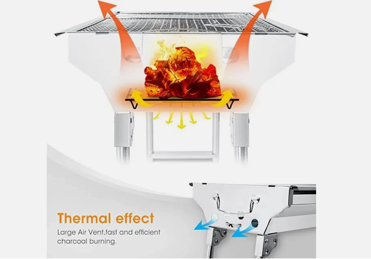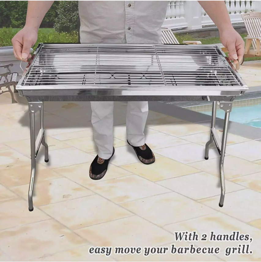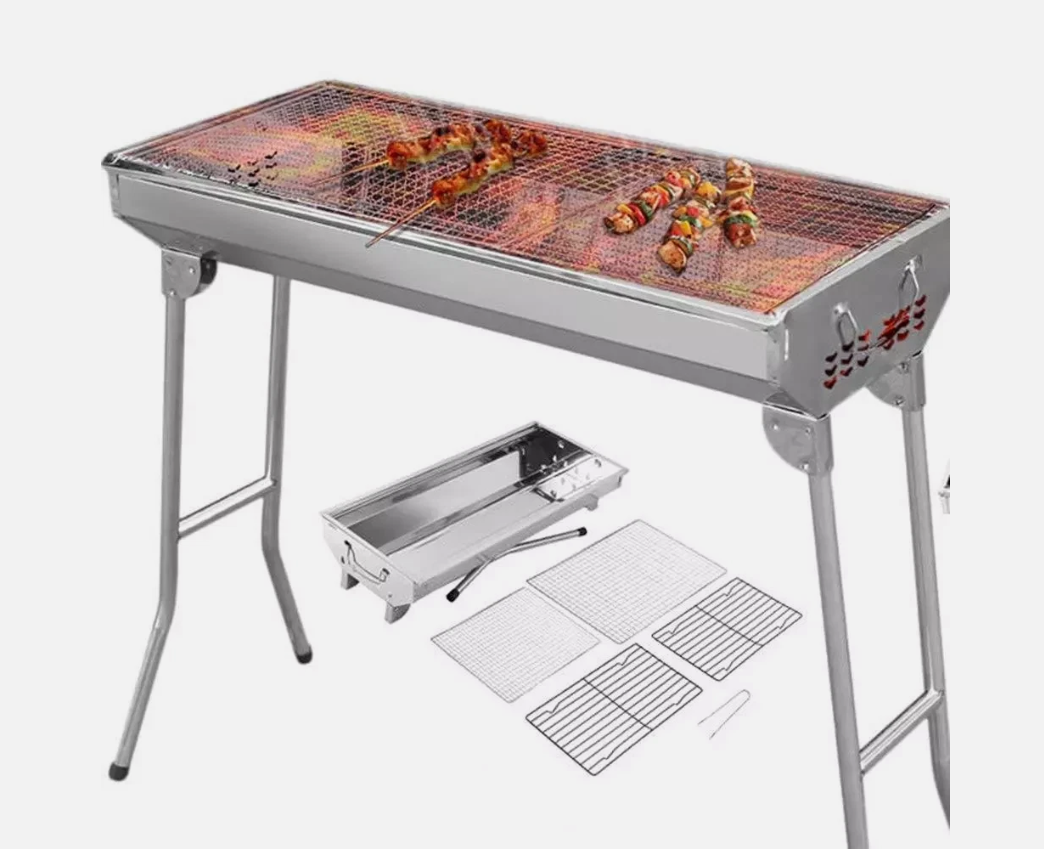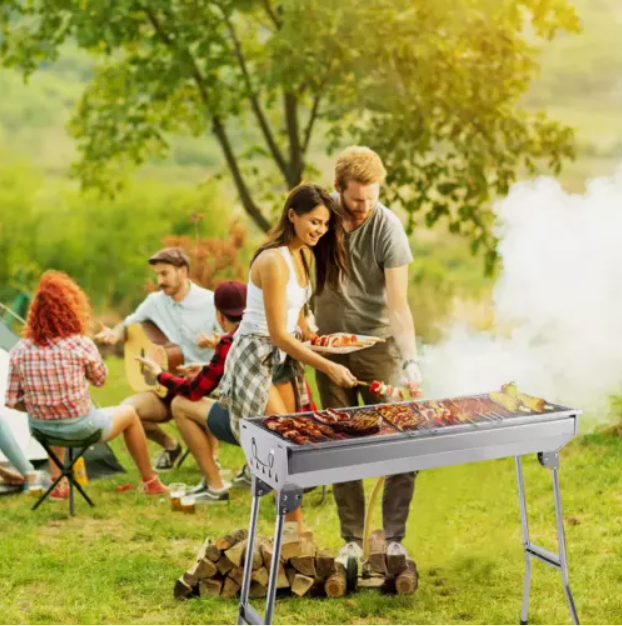 This Folding BBQ Charcoal Barbecue Grill is the perfect companion for camping trips and picnics. Made from durable stainless steel, it is easy to clean and corrosion-resistant. The grill set includes everything you need for a delicious barbecue, including a charcoal fuel type for a smoky flavour. With dimensions of 70cm in height and 33cm in width, this compact stove is lightweight at 2.85kg, making it convenient to transport. The sleek silver colour adds a stylish touch to your outdoor cooking experience.